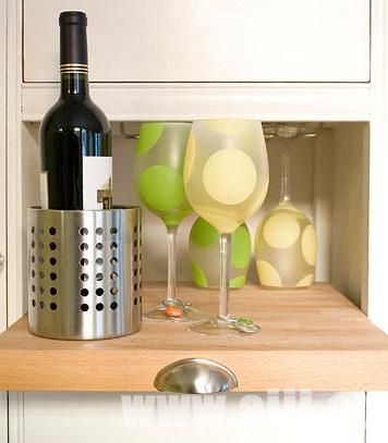 开放式存储空间里,若需放置一些不规则造型的酒杯等,建议可以将其悬置起来。你看这些餐具独特的外形设计,明快的色彩,在履行其实际功能之外,还是你餐桌、厨房上一道亮丽的风景。